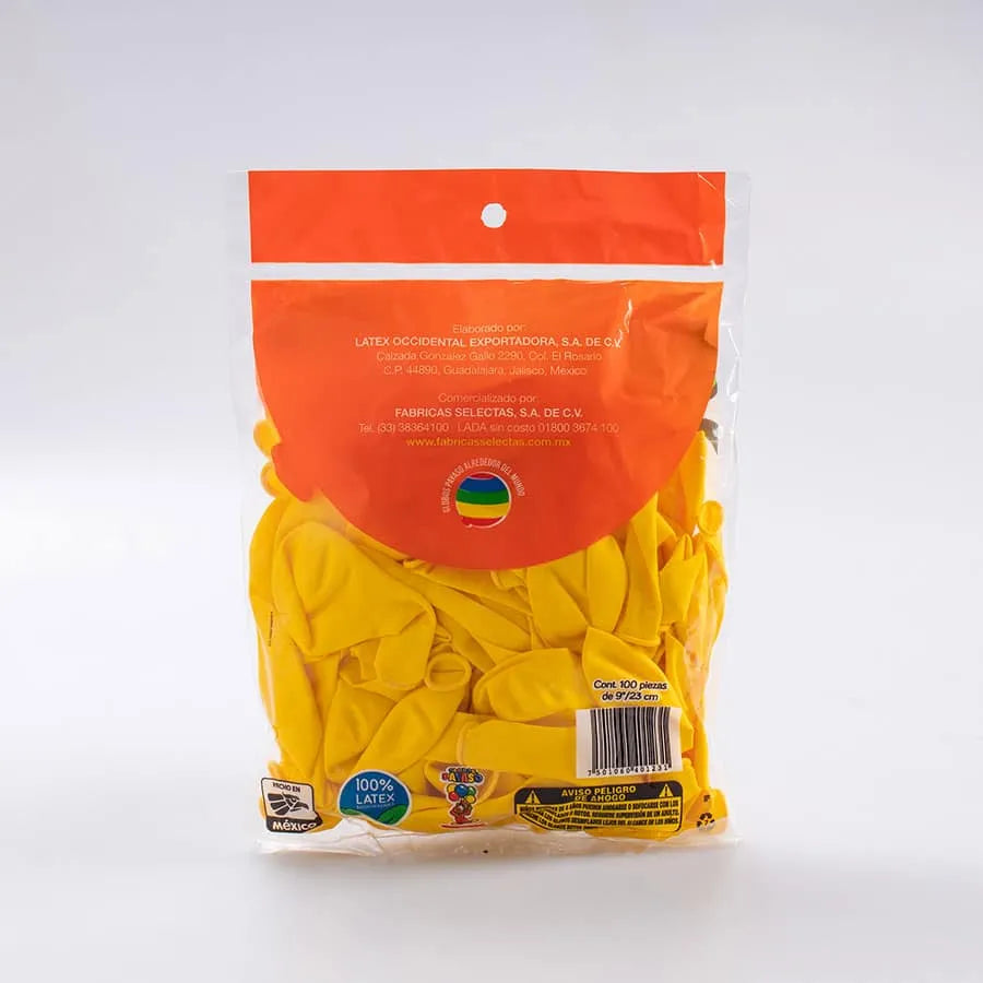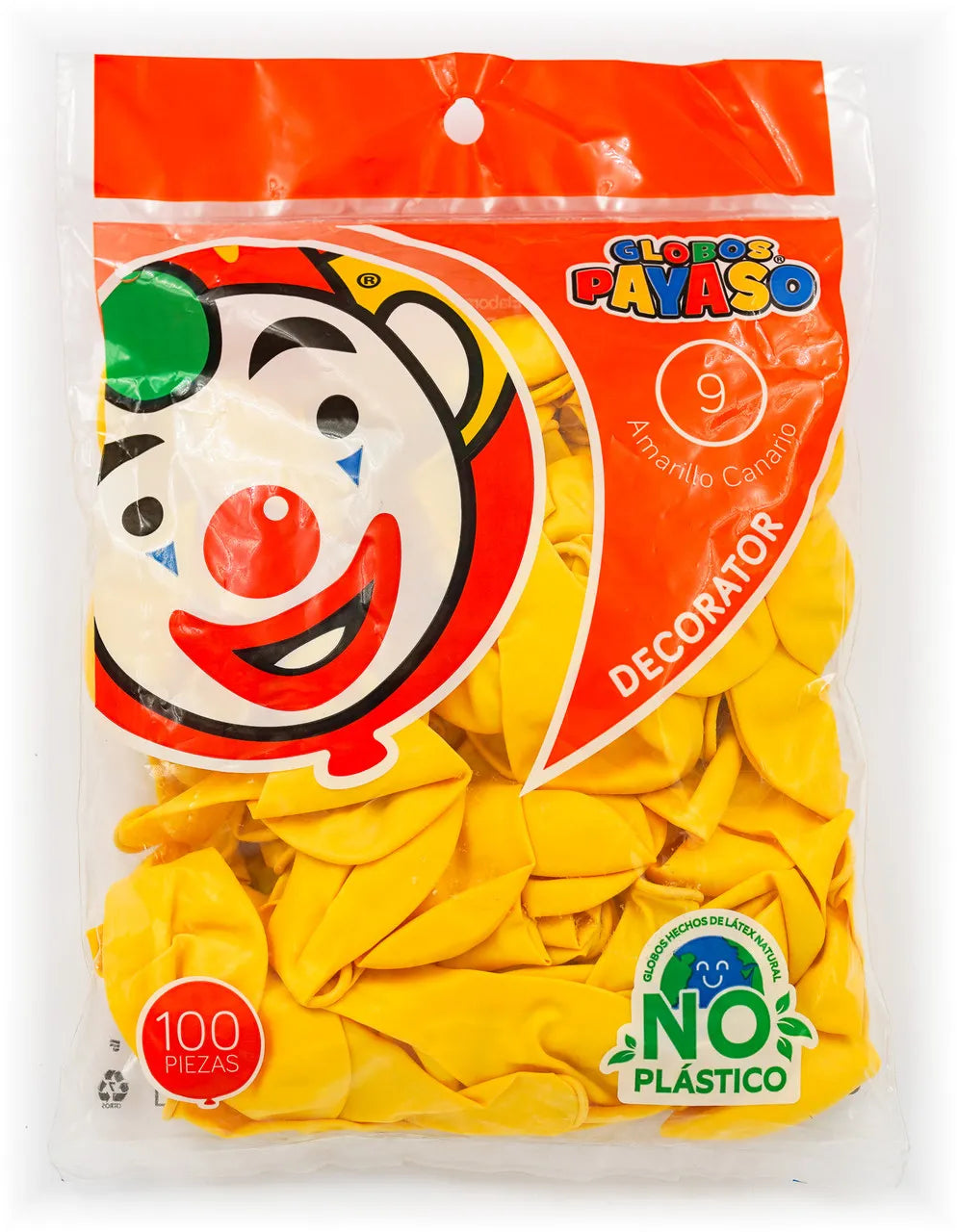 paquete de Globos Payaso #9 amarillo canario 100 piezas